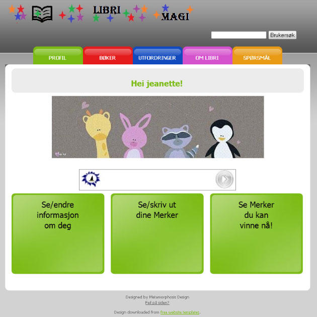 I faget INFO210 - “Prosjekt i systemutvikling” har en gruppe studenter laget et system for å fremme leseglede hos barn i skolealder, kalt LibriMagi. De fire studentene er; Kine Finsås, Maiken Fjellanger, Magnus Kroken og Jeanette Samuelsen. I systemet kan barn registrere hvilke bøker de har lest, og slik gjennomføre ulike utfordringer. Ulike grupper av barn motiveres av ulike faktorer, og gruppen har derfor prøvd å motivere på ulike måter, gjennom anbefalinger og belønninger. Brukerne kan kommentere bøker de har lest, og andre kan bruke disse kommentarene for å finne bøker de vil like, slik kan brukerne hjelpe hverandre med å finne interessante bøker. Utfordringer kan være vennlige konkurranser mellom brukere, for eksempel hvem som kan lese en bokserie på kortest tid, eller mer personlige oppnåelser, som å lese et antall bøker innen en sjanger. Gjennomføring av utfordringer belønnes med virtuelle premier, kalt merker. Disse vises på brukerprofilen og er også synlige for andre brukere av systemet. For å differensiere mellom ulike aldersgrupper ble det laget to ulike design til siden som var ment å treffe to ulike målgrupper, målgruppe fra 8 til 12 år og målgruppe fra 12 til 16 år.