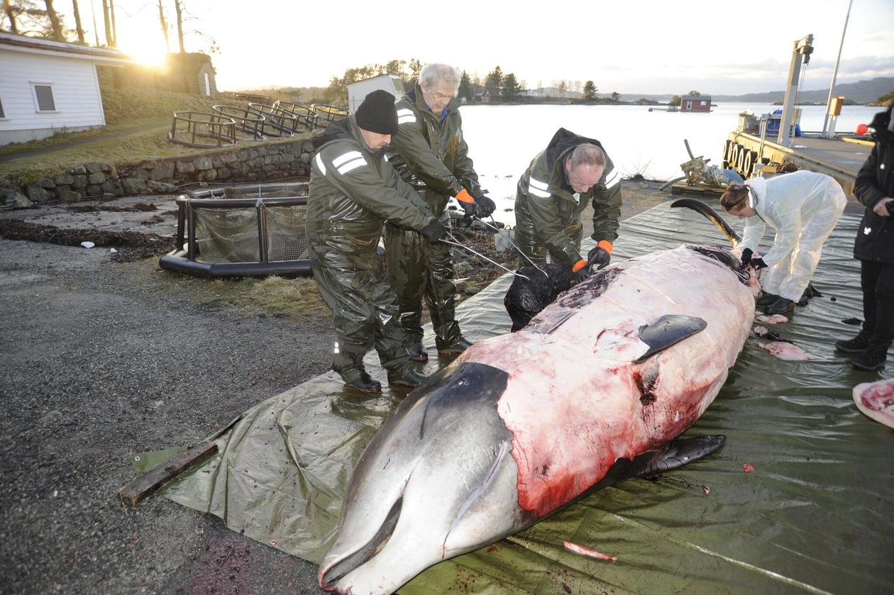 The goose-beaked whale is very rare at these shores, and it was therefore decided that the whale should be given to the University Museum of Bergen. Five scientists spent six hours dismembering the remains. When they opened the whale’s stomach, they found the plastic bags, the probable cause of the whale’s disease.