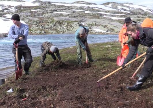 Det tverrfaglige forsker-teamet fra UiB sitt SapienCE senter er godt i gang med årets utgravning. De virker fornøyde, og litt hemmelighetsfulle.