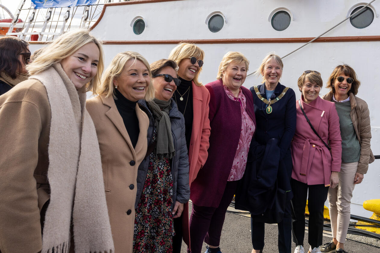 Rektor Margareth Hagen og Bergens ordfører Linn Kristin Engø var blant de mange som hilste Statsraad Lehmkuhl velkommen hjem.