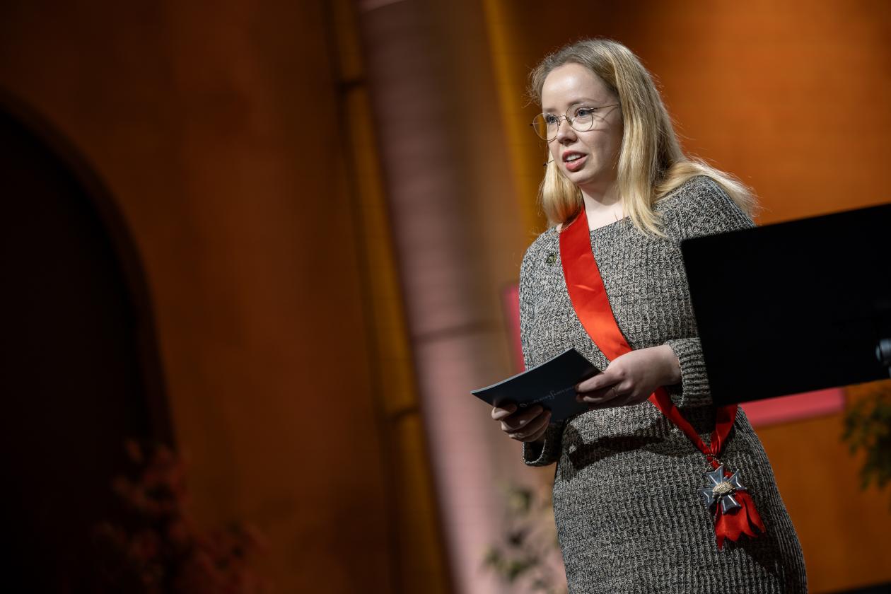 – Det er gledelig at Aarebrotforelesningen har blitt et nasjonalt referansepunkt for den vitenskapelige formidlingen. Ekstra gledelig er det at Are Sandbakken har valgt bergenseren Edvard Grieg, sa Hagen. Hun la også vekt på hvordan musikkhistorien kan hjelpe oss å forstå og tolke samtiden, et perspektiv som også Frank Aarebrot var opptatt av.