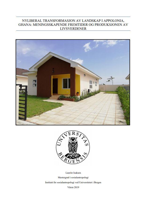 Fra januar til slutten av juni 2018 bodde og gjorde jeg feltarbeid i Appolonia — et sted som kan omtales som en semi-urban landsby. Appolonia Landsby har solgt tidligere landsbyland til et av verdens største private byutviklingsselskap, Rendeavour, som nå er fullt i gang med å bygge ut utopiske fremtider i form av den private byen Appolonia City. Oppgaven stiller seg dermed spørsmålet: ut fra et livsverdenperspektiv, hvordan forstår og uttrykker mennesker i både Appolonia Landsby og Appolonia City meningsfylte fremtider?