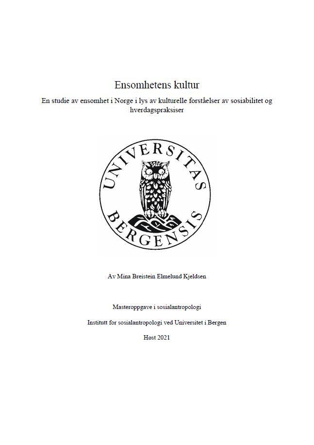 Denne oppgaven tar for seg fenomenet ensomhet i en norsk kontekst og undersøker hvordan kulturelle verdier, normer og forventinger i samfunnet påvirker enkeltpersoner sin ensomhet. Her belyser jeg en viktig tematikk som antropologer i liten grad har studert tidligere, nemlig ensomhet som kulturelt fenomen. Gjennom møter og samtaler over flere måneder med et utvalg av ensomme enkeltpersoner har jeg fått et innblikk i hvordan ensomhet utspilles for den enkelte. Siden man som forsker verken kan observere eller delta i ensomheten, argumenterer jeg for at intervju er den mest givende metoden for å samle inn data om ensomhet på. Oppgaven har et fenomenologisk utgangspunkt og jeg viser hvordan mennesker sine indre følelser knyttet til ensomhet, kan forstås i lys av både personlige omstendigheter, men også kulturelle meningsdimensjoner. Gjennom teori på ulike kapitalformer viser jeg hvordan opplevde skiller skapes i samfunnet mellom enkeltpersoner som opplever ensomhet og andre. Særlig er Bourdieu sin teori på kulturell, sosial og symbolsk kapital viktig. Jeg argumenter for at det i Norge er en generell oppfattelse av at en livsstil med mange nære venner og en produktiv hverdag er veien til det gode liv. Mangel på dette er dermed en sentral del av ensomheten. Jeg definerer ensomhet som en subjektiv følelse basert på at ens nettverk, tilknytninger og hverdagspraksiser ikke samsvarer med normative forventninger i samfunnet. Videre viser jeg hvordan de ulike aspektene av ensomhet samspiller og forsterker hverandre. Vi kan dermed forstå ensomhet som del av en selvforsterkende spiral. Denne spiralen, som jeg valgt å kalle ‘ensomhetens spiral’, illustrerer utfordringene knyttet til å komme ut av ensomhet. En alternativ og mer effektiv strategi for å håndtere ensomhet er derfor en kritisk utforskning av kulturelle diskurser i samfunnet knyttet til sosiabilitet og produktivitet.