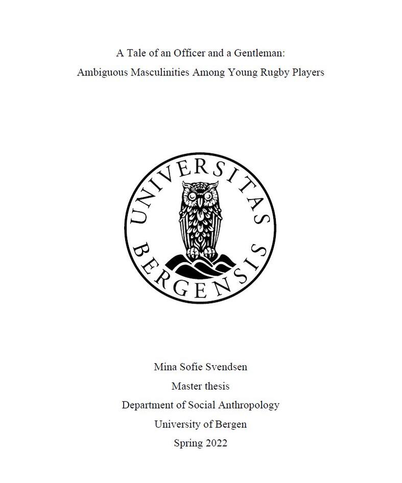 Sports have a great influence on how we as human beings organise us. Many of us take part in club sports when we are younger, or some bring their football out to the park as light amusement. It is not often, however, that we ponder on how sport came to be, or how it influences our very selves. This thesis seeks to examine how the sport of rugby union shapes our own notions of gender. By looking closer the sport’s evolvement from a British folk game, we can see how it has unfolded through elite establishments within Great Britain and then throughout the British Empire, where it was introduced to the colonies by the colonial officers. What I will argue, is that we can still see traces of the twinning masculine figurations of ‘the officer’ and ‘the gentleman’, in the performed gender identities at university rugby club in East Valley. I will illustrate how the sport of rugby reflects the two roles, and the very structure of it is built upon the ambiguity of ‘the rough’ and ‘the gentle’.