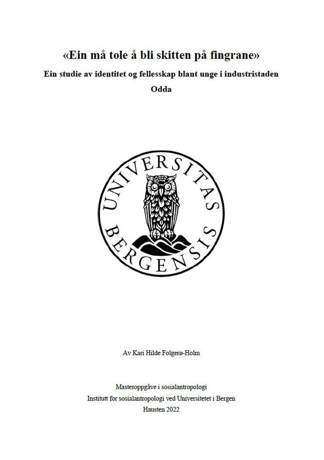 «Ein må tole å bli skitten på fingrane» - Ein studie av identitet og fellesskap blant unge i industristaden Odda