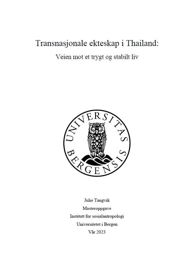 Siden 1990-tallet har transnasjonale ekteskap blitt mer vanlig i asiatiske land, men disse ekteskapene har en lang historie før den tid (Lapanun, 2022, s. 159). Asia blir ofte sett på som et sted for å oppfylle vestlige menns seksuelle fantasier og har uten tvil bidratt til økt turisme til Thailand (Lapanun, 2022, s. 160). Ut fra slike antagelser har det vokst frem fordommer mot disse transnasjonale ekteskapene. Denne avhandlingen ser nærmere på transnasjonale par i Thailand. De transnasjonale forholdene er primært belyst gjennom thai-kvinner.