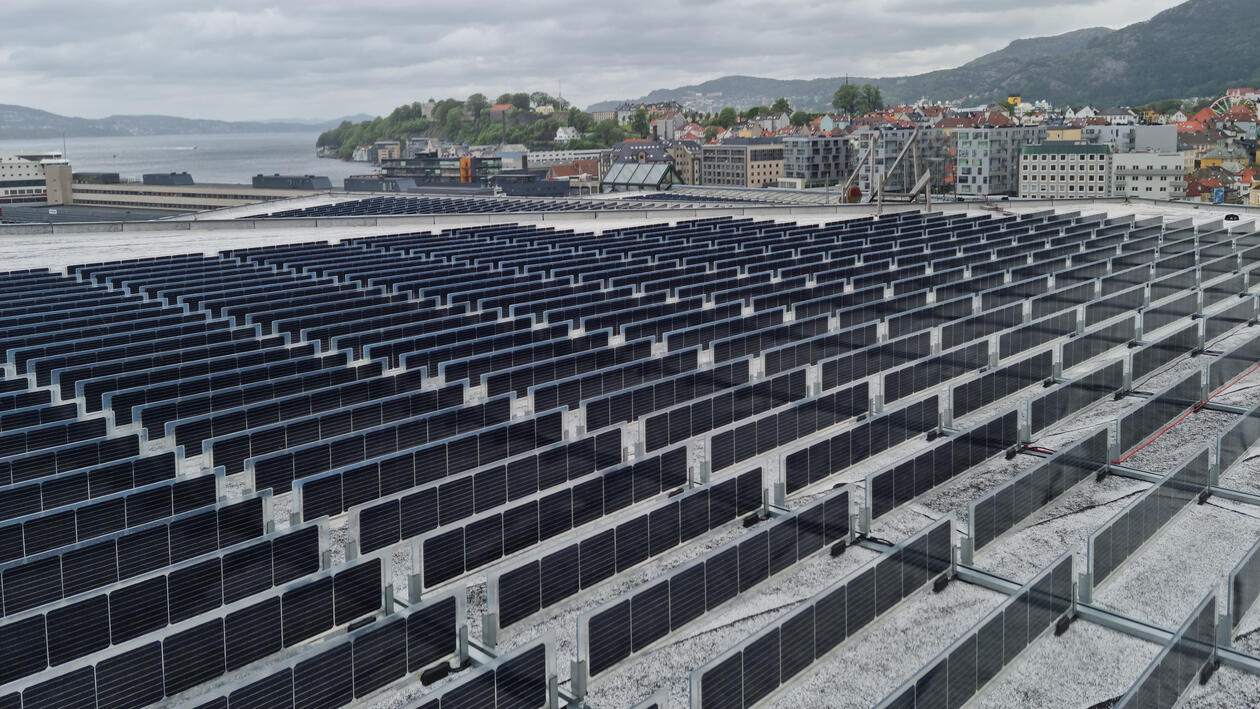 Solcelleparken på taket av Jus-bygget er svært effektiv, på tross av mindre paneler.