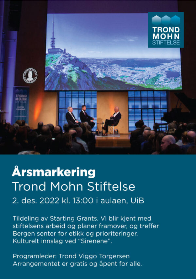 Trond Mohn stiftelse (TMS) inviterer til årsmarkering 2. desember i Universitetets aula, kl 13-15. Siste del er satt av til mingel og en matbit.