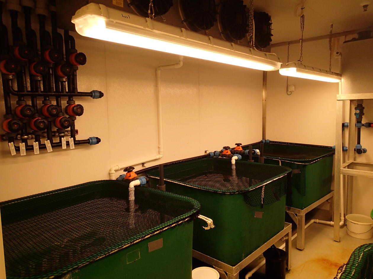 - Egne klimarom for algeproduksjon og dyrking og anrikning av planktonorganismer, f.eks. rotatorier og Artemia