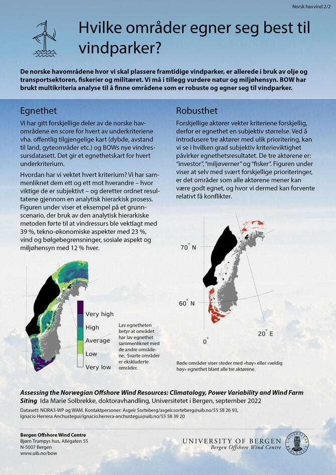 Avhandlingen presenterer også den første kartleggingen av hvor egnet de norske havområdene er for vindkraftutbygging.