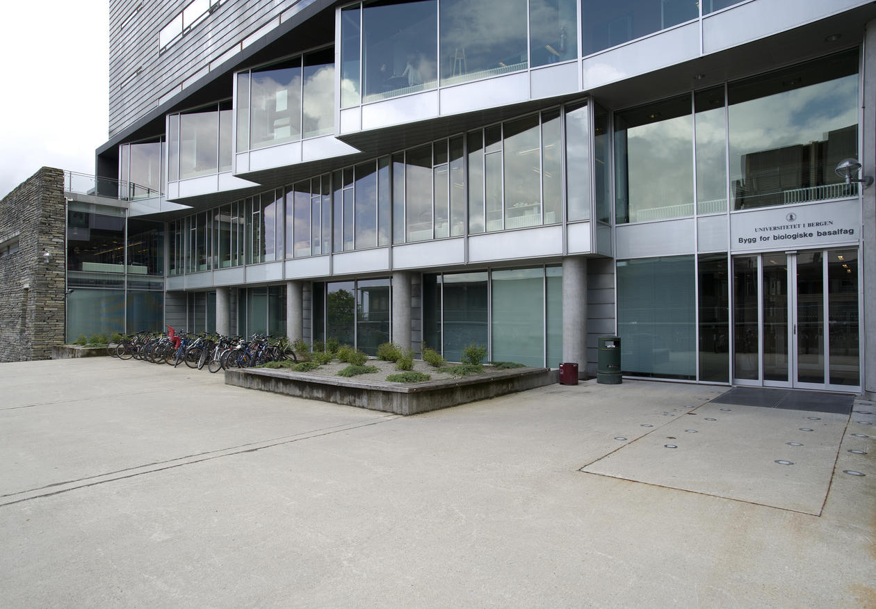Tett opp til Haukeland universitetssjukehus, på en tomt som selv arkitektene betegnet som «usedvanlig vanskelig og trang», ligger Bygg for biologiske basalfag. Hele 180.000 kubikkmeter med fjell måtte sprenges ut for å få plass til det hesteskoformede bygget i betong, sink, glass og stål.