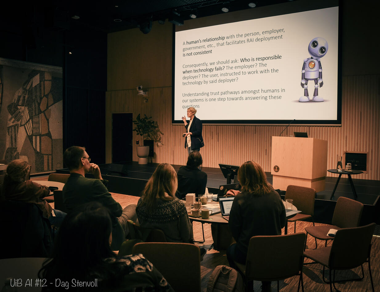 The seminar was a collaboration between Universitetsfondet and UiB AI. Samia Touileb, Accociate Professor at Infomedia, was the scientifically responsible.