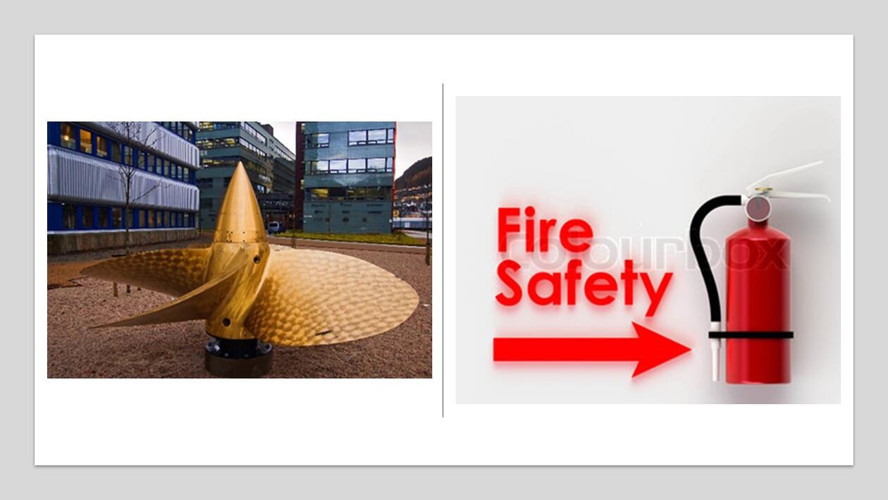 After leaving the building during fire drills, actual fire alarms or evacuations for any other reason, meet at the assembly point. For UiB premises in Marineholmen the assembly point is by the Propeller, between Datablokken and VilVite: