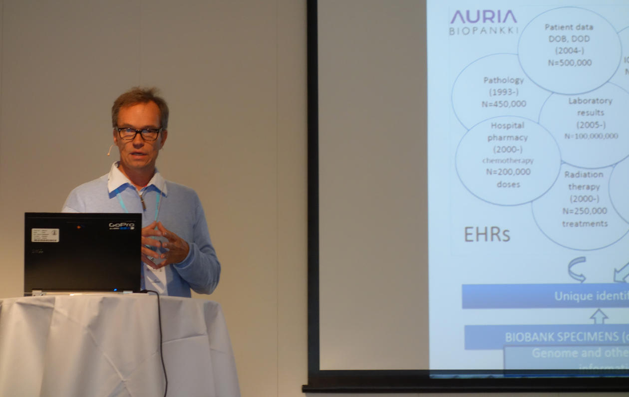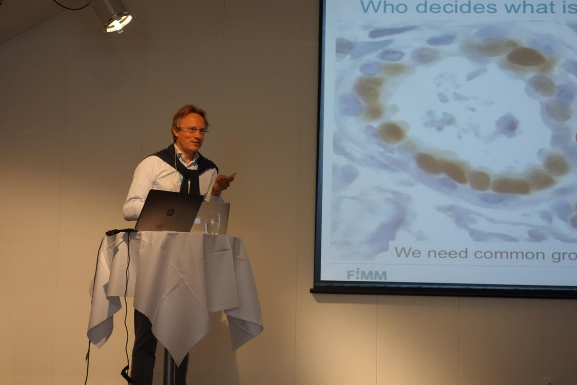 The symposium had talks by senior and junior researchers, company presentations and also a poster session. Among several exciting presentations (se program below), Octavian Bucur from Harvard Medical School talked about the new technique of expansion pathology, and the Vice Program Director of The Human Protein Atlas Fredrick Pontén (Uppsala) presented the publicly available database and its vision to include all human proteins. Monica Nistér from Karolinska Institutet presented her pediatric tumor biobank, and work done on brain tumors trying to identify genomic aberrations. Olli Carpén from the University of Turku discussed prognostic biomarkers in endometrial cancer and melanoma. Johan Hartman (Karolinska Institute) discussed the phylogenetic reconstruction of metastatic breast cancer, whereas Johan Lundin (Helsinki) covered aspects of image analysis and deep learning.