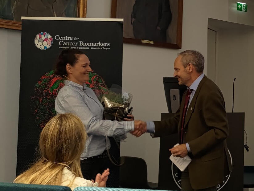 Flowers and smiles were in abundance when CCBIO, the Department of Clinical Medicine, the Medial Faculty and the Trond Mohn Foundation welcomed Carina Strell to the University of Bergen in a CCBIO Startup Seminar August 25.