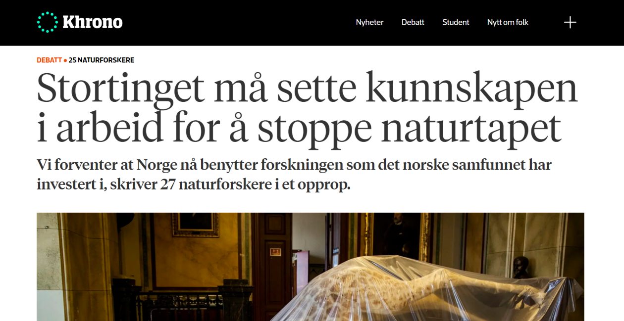 'Nature is under pressure. Choosing not to implement necessary measures, in the situation we are in now, is not a knowledge-based choice for Norwegian society and it is not responsible politics', argue the authors.