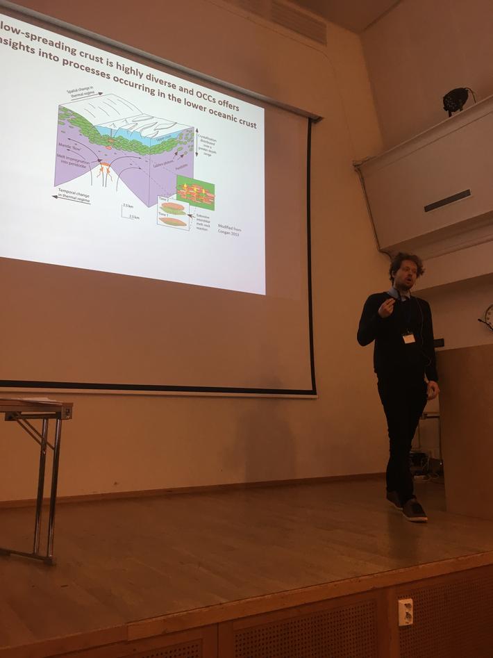 Linn Merethe Brekke Olsen was the first one out to present. She did an amazing job presenting "Biogeochemical processes in submarine mine tailings and the impact on benthic fauna". Håvard Stubseide was next presenting "The architecture and evolution of axial volcanic ridges at ultraslow spreading-rates" followed by Anders Bjerga (Geochemistry of peridotite and gabbro from the Schultz oceanic core complex, 73°N: implications for magmatic processes at ultraslow-spreading rates) and Solveig Lie Onstad (Seafloor accretion along a magma starved spreading ridge). Henrike Wilborn presented her poster on "Establishing Cu isotopes as a tracer for seafloor ore formation using hydrothermal experiments". Thank you all for doing such a great job representing the K.G. Jebsen Centre for Deep Sea Reasearch at the conference.