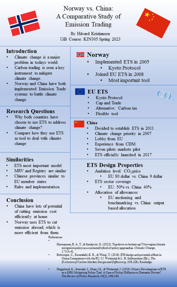 Håvard Kristiansen tackled emission trading systems (ETS) as policy tools to reduce greenhouse gases in both China and Norway. His paper not only explains the different setups and motivations behind the designs. He also reveals the central role the European Union played in both countries’ ETS.