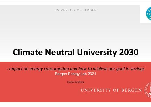 Steinar Sundberg of the facility department at UiB explain how UiB will achieve reducing energy consumption using solar power, seawater-based heating/cooling, building management systems and development of campus.