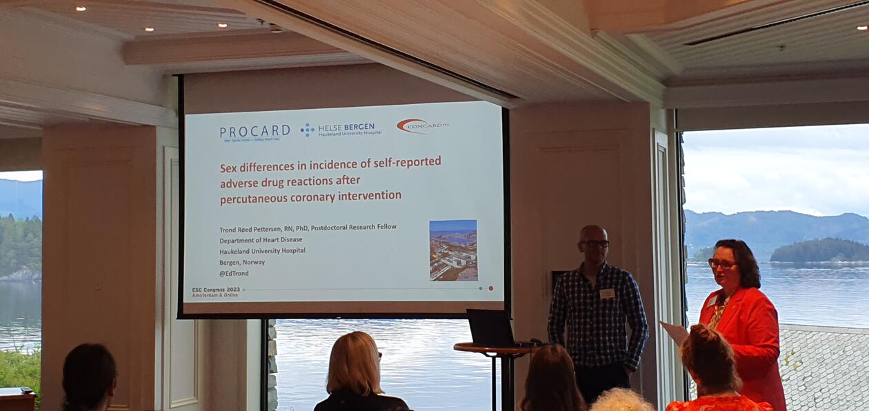 Female Heart Workshop 2024 started with an exceptional session on sex differences in management of high blood pressure. Professor Claudio Borghi from the University of Bologna lectured about sex differences in management of high blood pressure focusing on effect, adverse events and regulatory mechanisms. Consultant in nephrology Lene Halvorsen from Oslo University Hospital Ullevål presented the main results from the large national IDA study on drug adherence in patients with uncontrolled, treated hypertension. Postdoctoral fellow Trond Pettersen from the PROCARD research group at Department of Heart Disease, Haukeland University Hospital presented his study on sex differences in patient-reported drug adverse effects among patients with coronary artery disease treated with PCI.