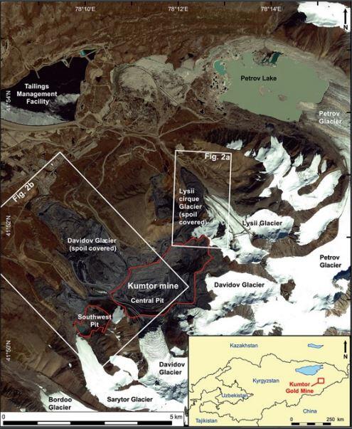 An interesting example from High Mountain Asia is the glaciers surrounding Kumtor Gold Mine in the Tien Shan mountains in Kyrgyzstan. These glaciers have become extreme examples of debris-covered glacier systems as the result of the dumping of huge volumes of mine waste onto the glacier surfaces in the last three decades (Evans et al., 2016; Jamieson et al., 2015). The glaciers have displayed surprising behaviours including rapid advances (i.e., surging) and the reactivation of Little Ice Age moraines, leading to the destruction of mining infrastructure. This area is therefore a good case study to explore how landsliding and the formation of thick debris layers affect the dynamic evolution and mass change of mountain glaciers over a range of time scales.