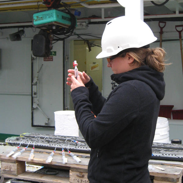 Ida's team collected some sediment samples with the new push core apparatus on the ROV - its use demands some very fine dexterity on the part of the ROV pilots. They would like to learn more about the microorganism partnerships in the sediments. Several different kinds of microbial specialists seem to "work" together. This team work is actually visible in the form of thick white sulphide mats on the seafloor. Ida would like to explore the way the community structure changes with depth.