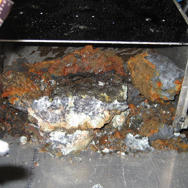 Everyone is busy working up the fluid and rock samples. We measured the temperature of the vents yesterday – over 300°C!