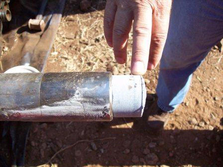 The photo shows a fresh sample of volcanic basalt sticking out of the end of the inner drill tube and was collected during the Barberton Scientific Drilling Project.
