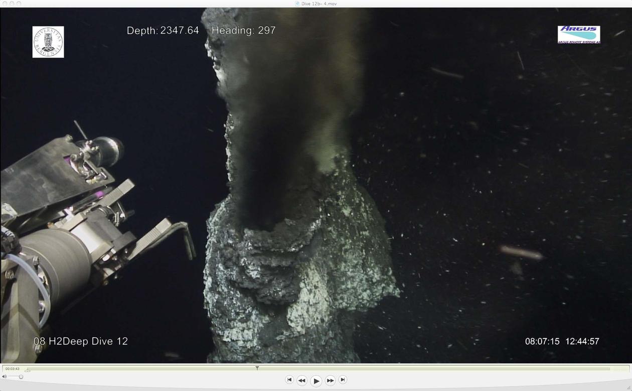 Norwegians Rolf Birger Pederson and his colleague Ingunn Thorseth have been searching for a vent field like this one for ten years. In the interim, under their leadership the Troll Wall and Fairy Tale vent fields were discovered near Jan Mayen. This field, however, with 5 active chimneys in two areas, both discovered within the last 48 hours, far exceeds anything that has been found to date in the North Atlantic. It is truly a major contribution to the scientific discoveries of the ocean floor.