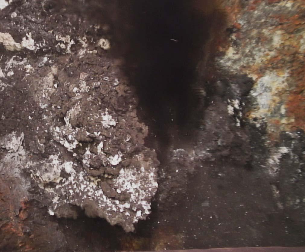 And we then slowly watched as the first smoker came into view and the camera started going up, up, and up, seemingly forever. We were speechless as the camera continued onto the top of this huge formation, made even more gigantic by its placement on top of a hill, and sure enough, at the top, some 11 meters (over 35 feet) up, there was an unmistakeable plume of thick dark smoke. We had found our vent!