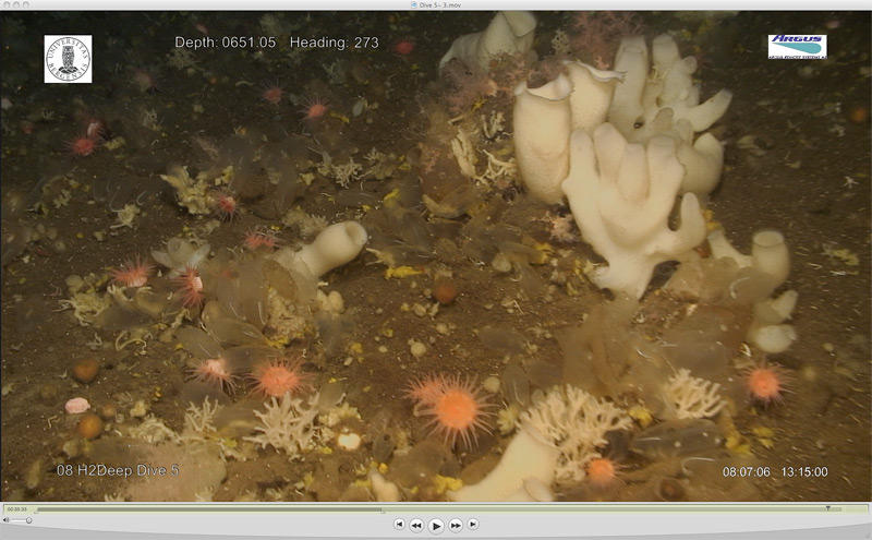 During the cruise in 2008, the ROV filmed a transect across the seamount. Hans Tore used the same transect in his trawl. This will give him a unique opportunity to compare pictures of living organisms in their natural habitat with preserved specimens