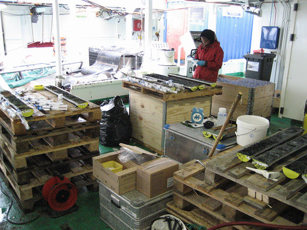 Tamara and Kirsten have been up all night processing the new material. They have been collecting both pore water and solid samples for further study.