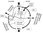 The nutrient sink function happens by a complex interaction between the metabolisms of the sponge and its associated microbes: By modulating their ventilation behaviour, sponges can regulate their internal oxygen concentration, facilitating both aerobic (oxygen-dependent) and anaerobic (not oxygen-dependent) processes. Under aerobic conditions, nitrifying microbes transform ammonium to nitrite and nitrate. When the sponge body turns anoxic as a result of reduced pumping activity, other microbes take over: denitrifyers reduce nitrate to elemental nitrogen, while anaerobic ammonium oxidizers (anammox bacteria) combine nitrite and ammonium to form elemental nitrogen. As a result of both processes, the nutrients ammonium and nitrate are removed from the marine system.