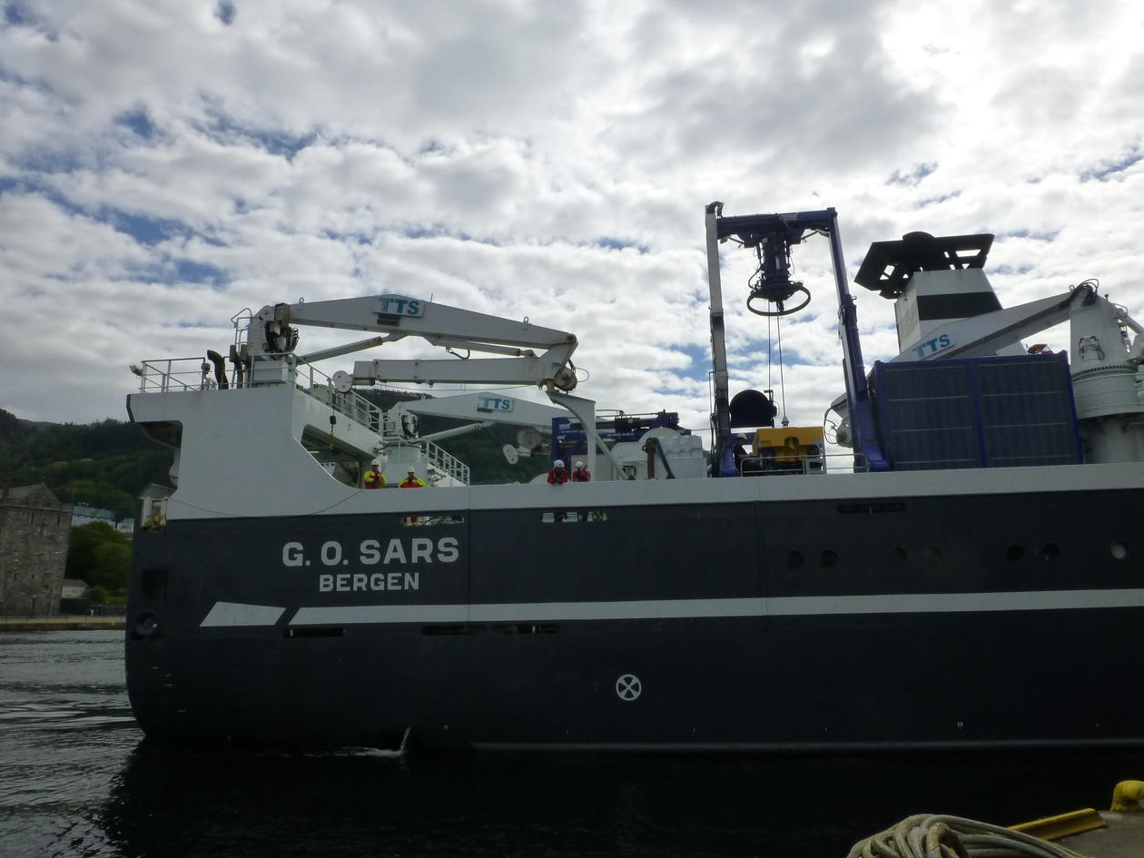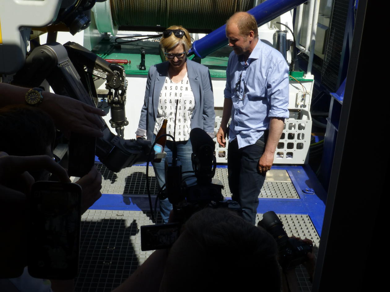 On July 1st in Bergen harbour aboard the R/V G.O. Sars, Dr. Rolf Birger Pedersen handed ROV Ægir 6000 a beer to perform a self-baptism using its automanipulating arm. Along with the christening, Rector Dag Rune Olsen and Pro-Rector Annelise Fimreite of the University of Bergen gave Ægir well-wishes for all its future expeditions. The ceremony landed on a sunny afternoon filled with excitement about the unveiling of the star of NORMAR (The Norwegian Marine Robotics Facility).