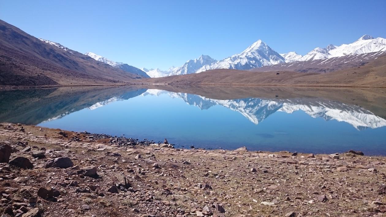 Innsjøen Chandra Tal, som ligger på 4300 meters høyde i den indiske regionen Himachal Pradesh i vestlige Himalaya.