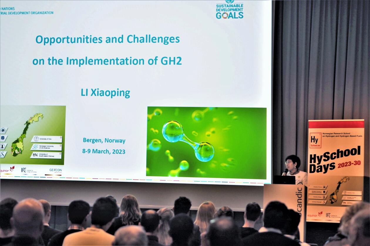 Ms. Xiaoping Li, advisor of the United Nations Industrial Development Organization (UNIDO), shared UNIDO’s global vision and activities on the implementation of green hydrogen. She was impressed by the proactive efforts and collaboration on hydrogen energy by Norwegian universities and research organisations, and congratulated the organisers for the initiative: