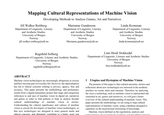 The Machine Vision Database collects information about games, art and narratives that use or represent machine vision technologies. In the second half of 2020 it will be fully developed, and the project will use network analysis and other methods to explore and analyse the data.