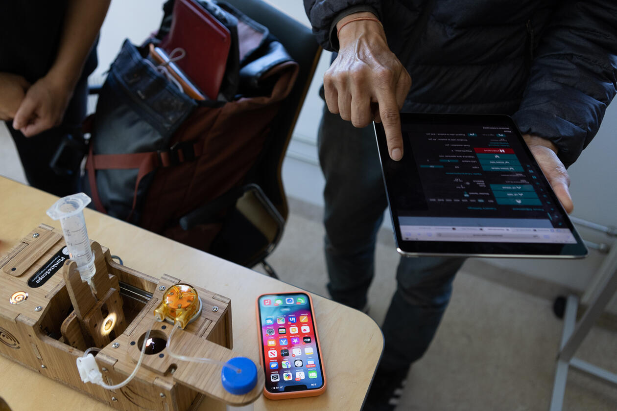 The following day, our guests joined us at the Michael Sars Centre for a tour of our facilities, and to meet our technicians and our researchers. Manu Prakash took the time to collect samples from Byfjorden right beside our Center, before demonstrating the PlanktoSkope, a modular, open-source platform that allows for high-throughput quantitative imaging of plankton samples for citizen oceanography.