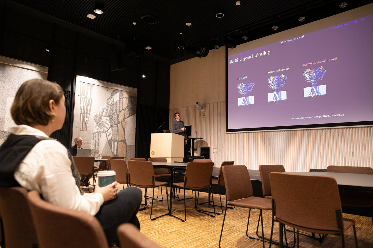 Michael Sars Centre group leader Timothy Lynagh presents his research on neuropeptide receptors at the Ocean Outlook Conference.