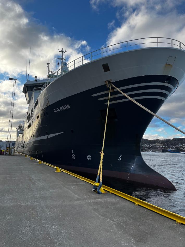 In addition to collecting samples for her own research she supported IMR colleagues with survey work, gaining new skills in sexing and staging shrimps. “It was a learning experience for me as well of what these surveys consist of”, she said. “I was also measuring and sexing sharks. It was fun, it was interesting!”