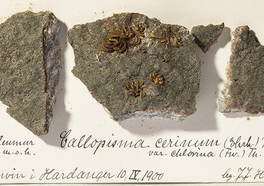 Herbarium BG holds collections of vascular plants, mosses, algae, lichens and other fungi. It contains a total of around 535 000 preserved specimens that are the result of nearly 200 years of collecting activities around the world with a special focus on in Western Norway.