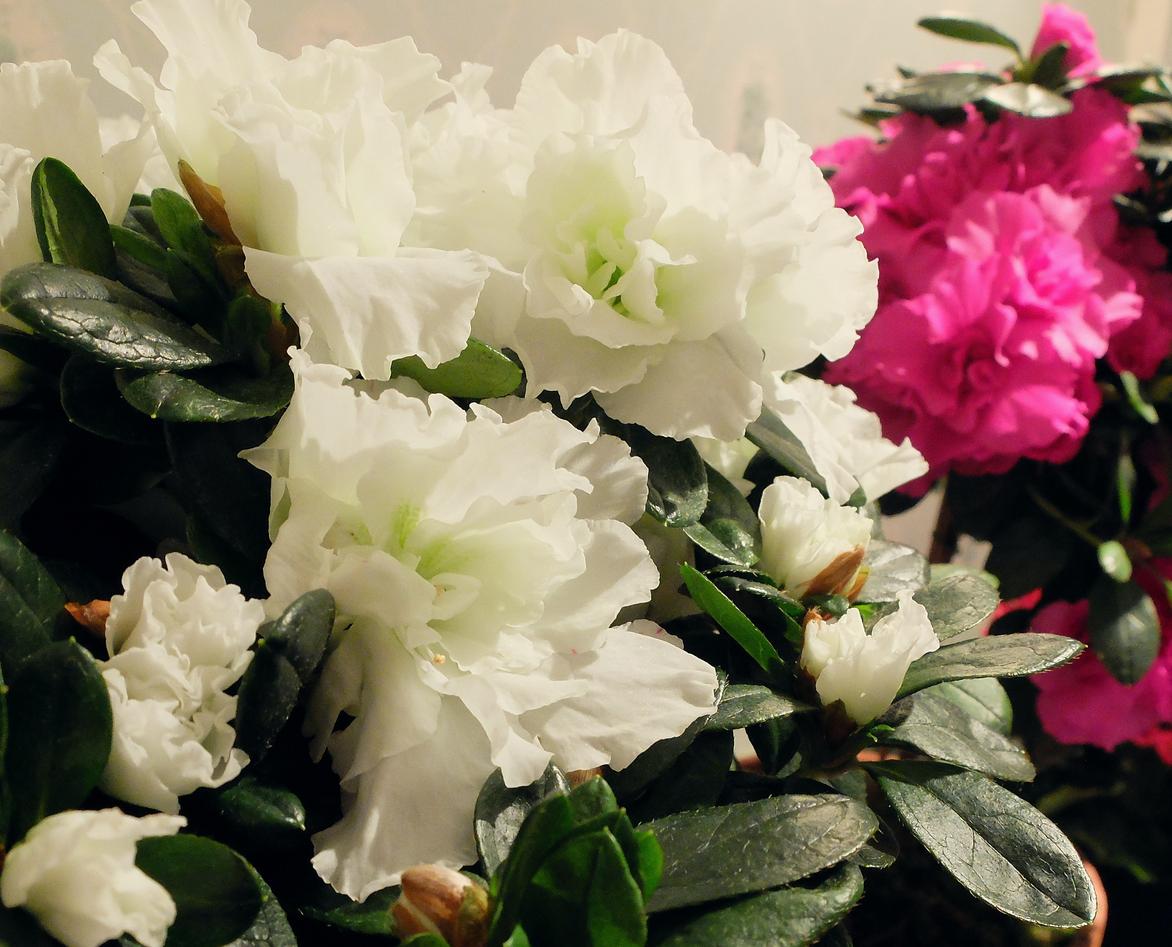 Juleasalea Rhododendron simsii Innendørs kan duftende rhododendronarter virke irriterende for duftoverfølsomme personer, men de duftfrie juleasaleaene er trygge.