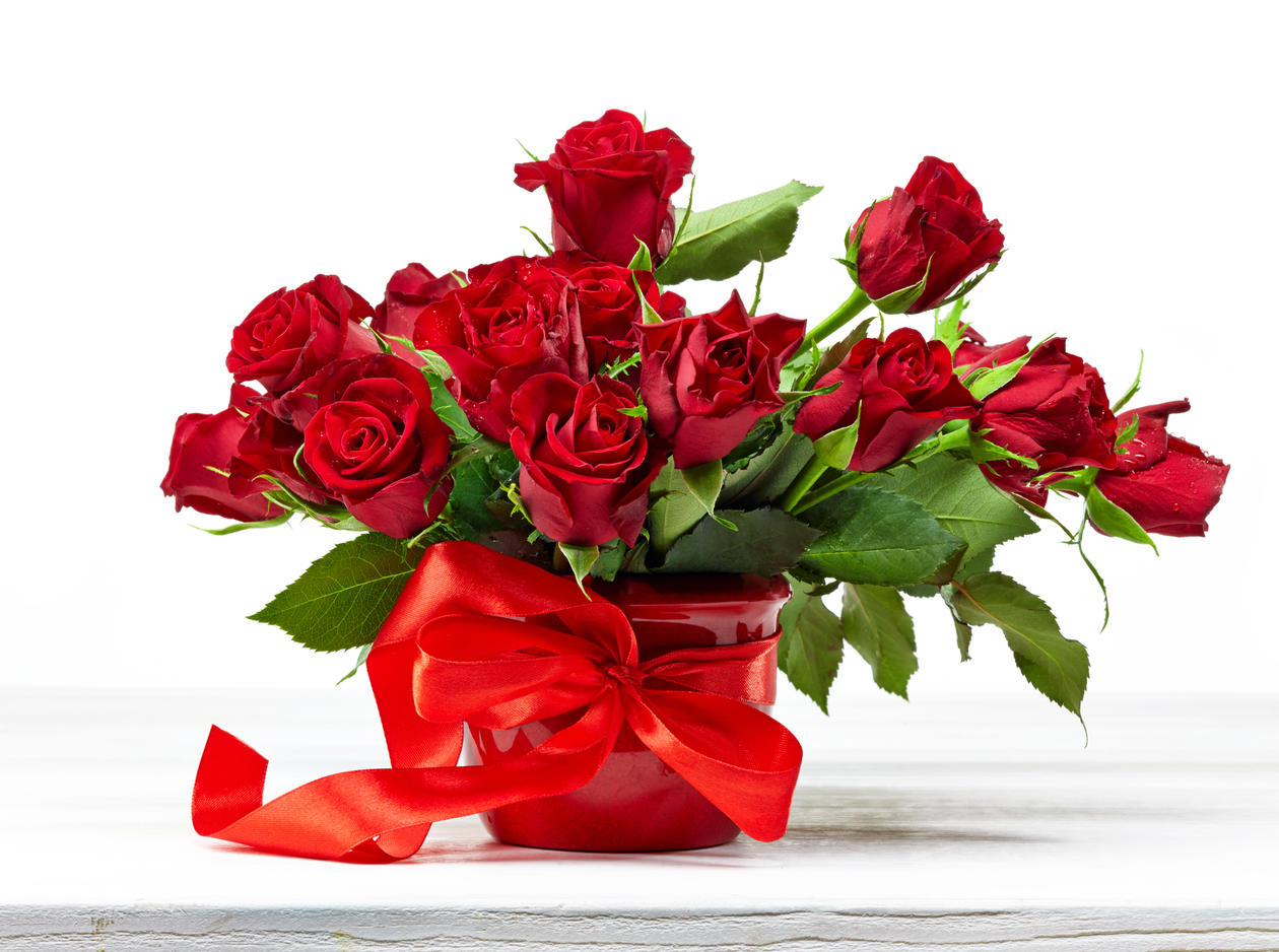 Avskårne røde roser Rosa spp. Duftende sorter kan gi allergiproblemer, men vanlige avskårne er duftfrie og gir ikke kjente allergier.