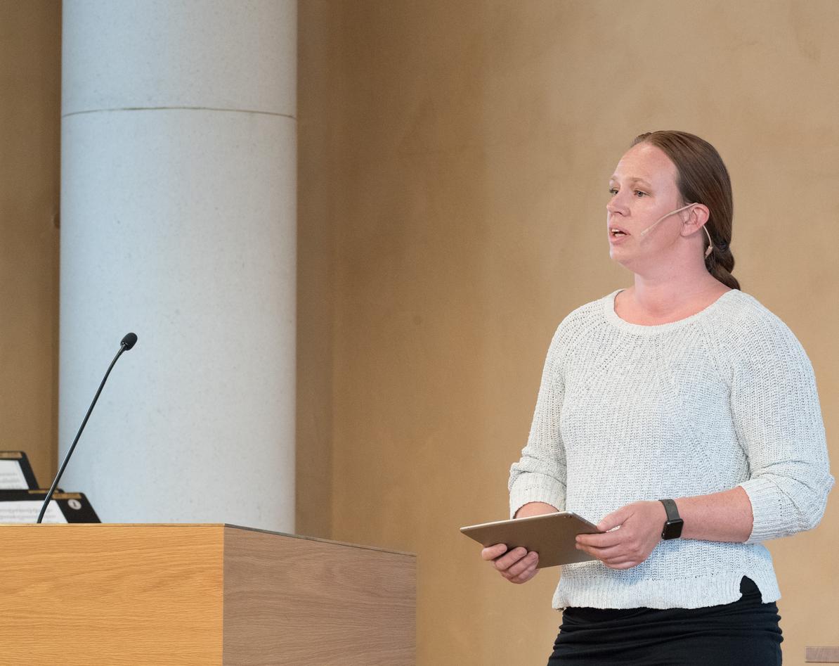 Det var tidligere student Ingeborg Marie Endresen som var årets hovedtaler. Hun fortalte både om sine erfaringer fra studiene og om hvordan hun har fått bruk for sin utdanning i informasjonsvitenskap i arbeidslivet. Hun jobber nå som leder for Forretningsdrift IT i BKK.