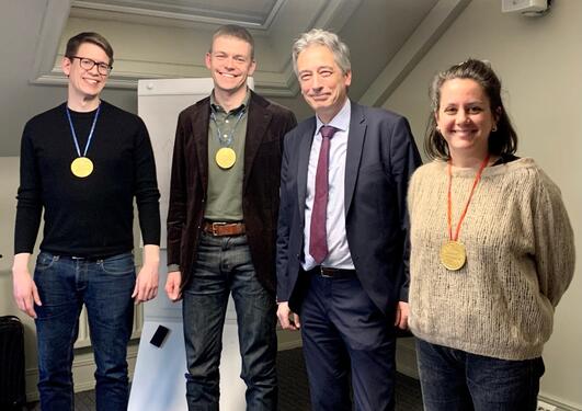 PhD fellows Marit Sandberg and Anja Linde celebrate their successful midway evaluations with mentors and colleagues at the Center