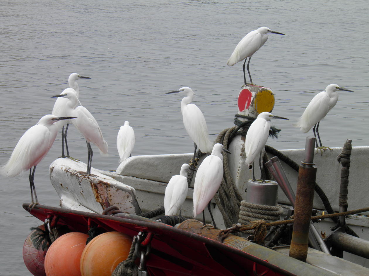 The first site was 蚵仔寮 north of Kaohsiung. Here landings take place during the daytime. As is characteristic for coastal fisheries in Taiwan, this is a highly mixed fishery. Catches are often sorted at sea. Some of the catch may be discarded but markets accommodate lots of different species, and leftovers may also be landed for processing into fish feed. Hairtails were present, though not in big numbers (weather had not been suitable for targetting them). Otherwise, the catches were a good lesson in fish biodiversity. I saw my first-ever hammerhead shark - something that would have been more fun to observe in the wild. A curious detail was that the port of was completely devoid of seagulls. Instead, there were lots of egrets waiting for their share of the catch.