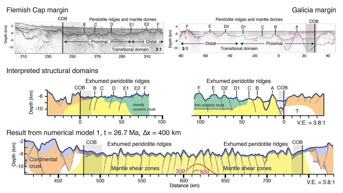Researchers from the Department of Earth Science of the University of Bergen explain in a paper published in Nature Communications how exhumed mantle domes form at magma-poor continental margins and at ultra-slow mid-oceanic spreading systems controlled by frictional shear zones.