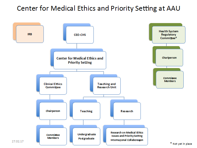 The center is lead by Dr. Dawit Desalegn and coordinator is Dr. Frehiwot Berhane. Both of them are are in addition to their commitments in Ethiopia, also PhD candidates in medical ethics at the University of Bergen. Assistant coordinator is Yeshanew Negussie.