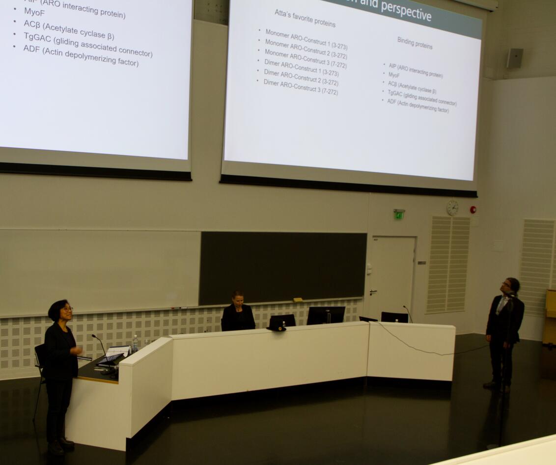On Thursday October 6th, Atta defended his PhD thesis entitled "Structural characterization of Toxoplasma gondii armadillo repeat only protein and purification of actins from apicomplexan parasites". As the opponent, we had the pleasure of hosting Dr. Young-Hwa Song from the University of Lübeck, Germany. Huge congratulations to Atta and many thanks to the opponent and everyone who participated in the big day.