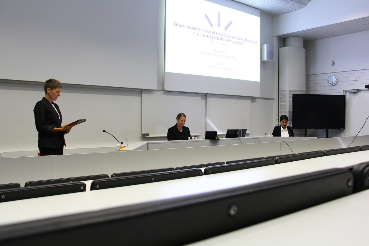 On Tuesday August 15th, Devaki defended her PhD at the University of Oulu. The opponent was Associate Professor Beáta Bugyi from the University of Pécs Medical School, Pécs, Hungary. We all very much enjoyed an insightful discussion on actins, actin depolymerizing factors, and their roles in the malaria parasite. Thanks to everyone involved and huge congratulations to Dr. Devaki Lasiwa!